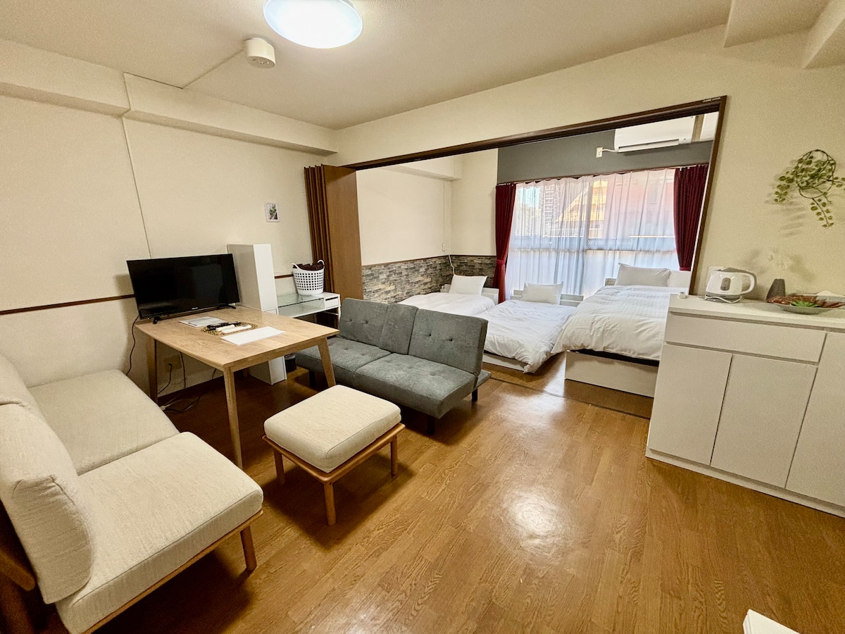 Grand appartement japonais juste à côté du PeacePark. Appartement d'une chambre avec 2 lits Queen Size et 3 canapés-lits doubles. Installations complètes et équipements hôteliers pour offrir les meilleures conditions pour votre séjour. Les draps et serviettes sont fournis. Il dispose d'un ascenseur et d'une fonction de verrouillage intelligent pour plus de sécurité et de sûreté. Le wifi, la télévision et le lave-linge sont fournis. Toilettes et baignoire séparées. Remarque : le nettoyage est effectué une seule fois après votre départ.