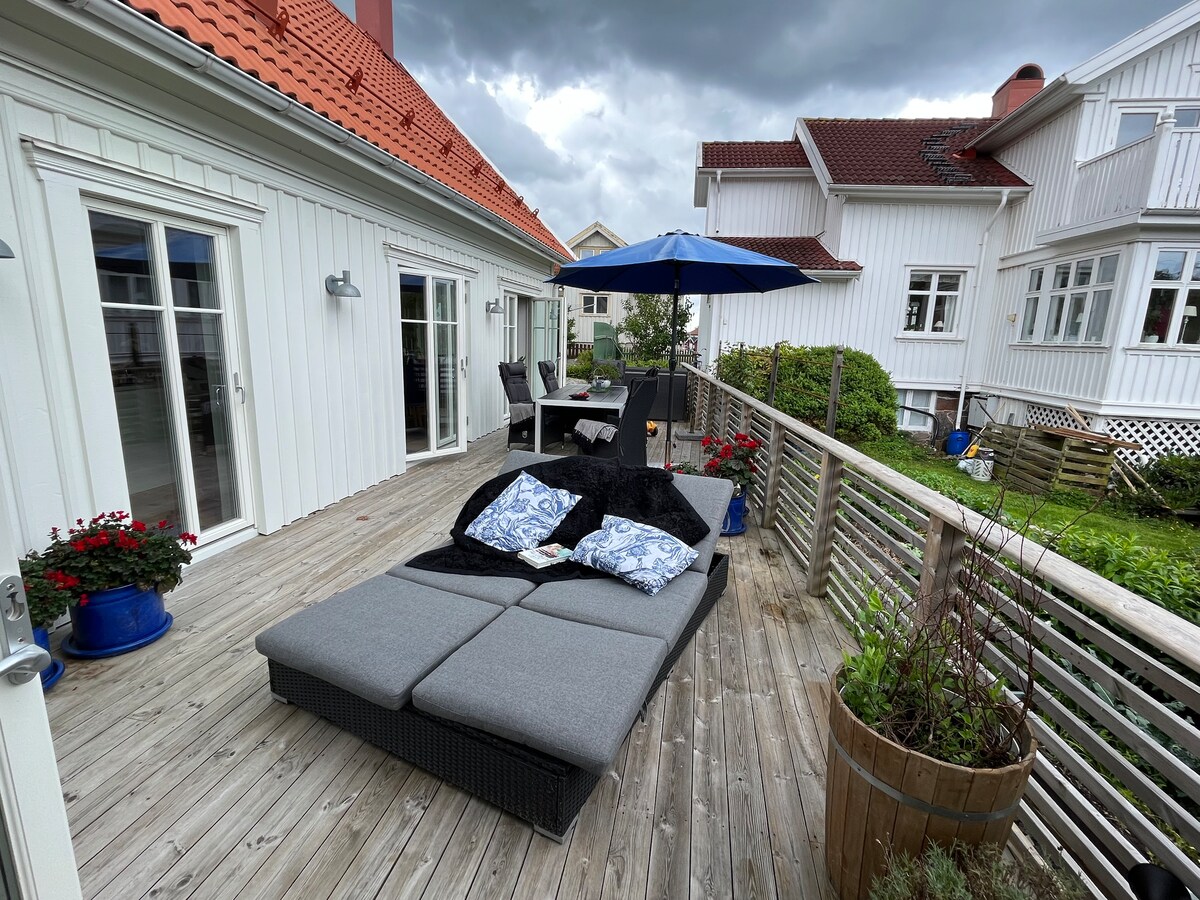 Välkommen att hyra vår lägenhet på vackra Hönö med en fantastisk havsutsikt. Härlig atmosfär med altan, balkong och trädgård. Plats för 6 gäster, 3 sovrum. Det är bäddat och klart när du kommer, lakan och handdukar ingår. Badplatsen Hästen 1 min promenad bort. 5 min promenadavstånd till det trevlig Hönö Klåva hamnområde/centrum med restauranger och butiker. Öppet året runt. Parkering ingår.Laddare till elbil finns, betalning 3kr/kWh 4 cyklar finns. Själv incheckning med dörrkod. Städning 700kr,