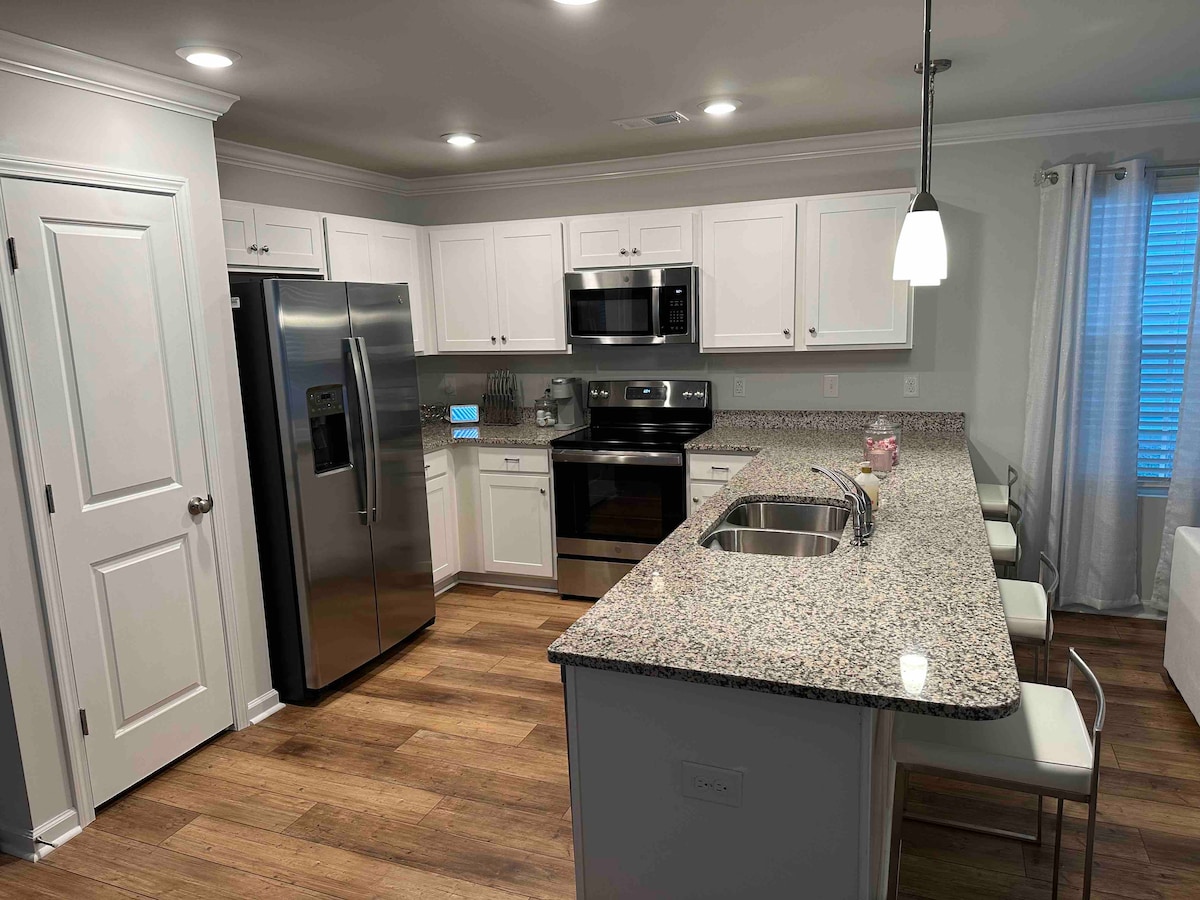 Situé juste à l'extérieur des portes de la base aérienne de Shaw. Vous serez à quelques minutes du centre-ville de Sumter et à quelques minutes de route de Columbia, Camden et Florence, SC. Cette maison moderne de 3 lits et 2 salles de bain dispose d'un plan d'étage ouvert avec beaucoup d'espace. ⭐️ Les incontournables ⭐️ 🛌 1 lit King size 🛌 2 lits queen size Téléviseurs 📺 intelligents dans toutes les chambres 🌬️ Ventilateurs de plafond dans les chambres internet 🛜 rapide 🏃♂️Espace de sécurité espace de travail💻 dédié 🍗 Un grill 🚗 🚙 grand garage 2 voitures 🍴 grande cuisine Grande cour clôturée (intimité)