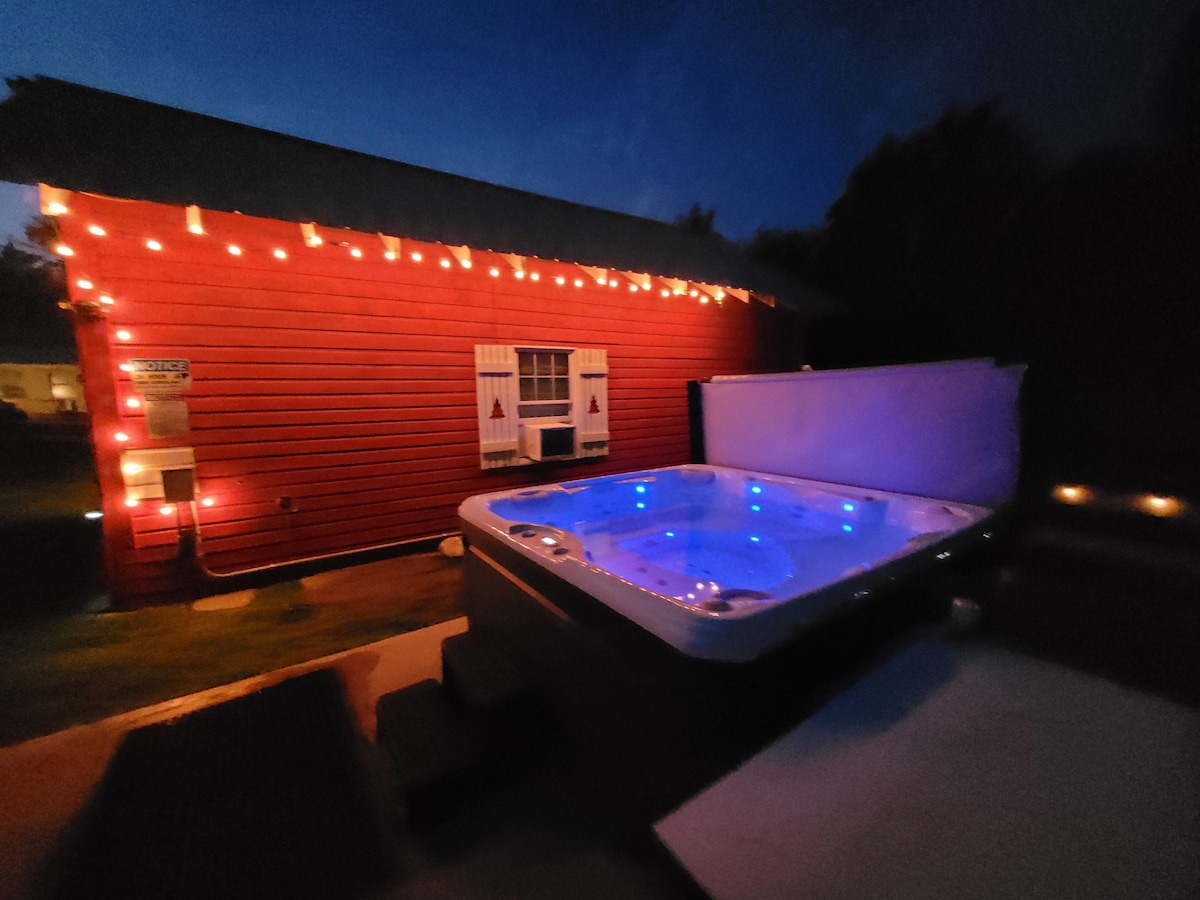 Retraite confortable dans une grange rouge | Bain à remous, grande pelouse