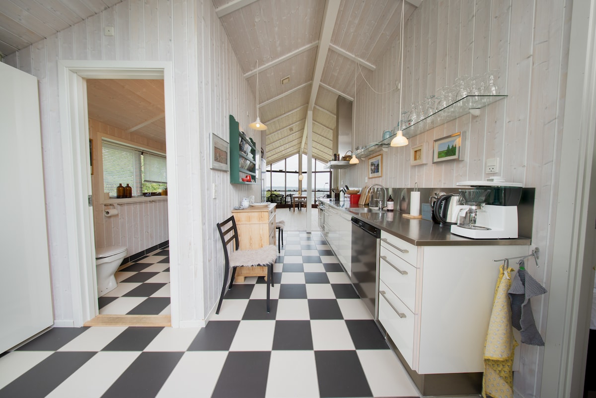 Détendez-vous dans cette maison unique et calme surplombant le fjord Vejle, le champ et la forêt. La maison dispose d'un salon avec cuisine, coin repas et canapé, de toilettes avec douche et à l'étage avec chambre. Il y a deux lits d'élévation (lit double) ainsi qu'un lit simple sur pied. Gardez à l'esprit que les escaliers menant au 1er étage sont un peu raides et qu'il n'y a pas tellement d'espace autour du lit double. À l'extérieur, il y a deux terrasses, toutes deux avec vue. Il y a un poêle à bois avec du bois de chauffage disponible gratuitement. Les draps et serviettes sont inclus.