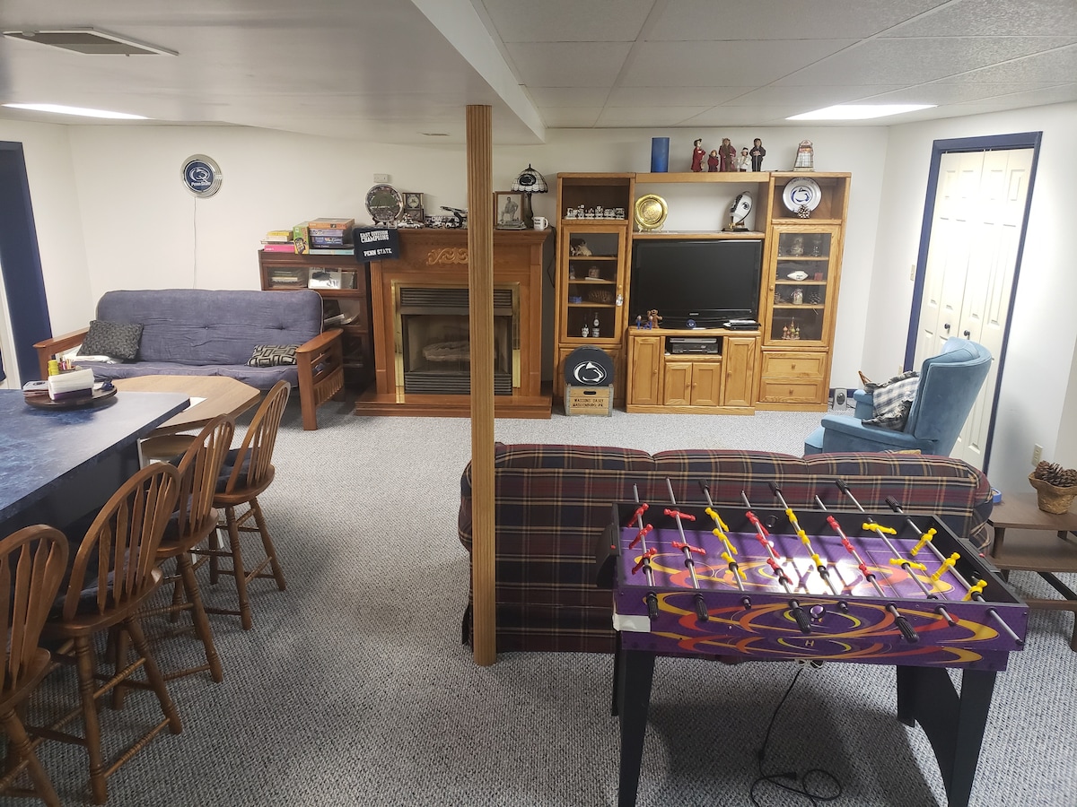 - Quartier résidentiel calme ; - Appartement de sous-sol récemment rénové avec accès de plain-pied. - Pas d'escaliers à monter - Lave-linge et sèche-linge facilement disponibles ; - Idéal pour un week-end ou un séjour prolongé de 30 jours et plus ; - Arrivée autonome facile avec serrure intelligente ; - Cuisine ouverte, salle à manger et salon - Matelas et oreillers neufs avec housses de protection - Le coin bar à café comprend une machine à café Keurig. Proche de Penn State et Beaver Stadium (15 minutes en voiture), Mt. Nittany, de la station de ski de Tussey et du parc des expositions Grange Fair.