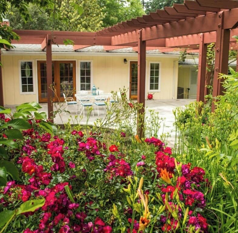Le chalet a été réinventé à partir d'une cabane qui se tenait depuis les années 40 pour compléter et étendre la maison du ranch. Il comprend un lit king size qui s'ouvre sur la terrasse, 1 chambre queen size qui donne sur les beaux jardins de ma grand-mère, 1 salle de bain avec douche à l'italienne qui vous baigne dans la lumière du matin, cuisine meublée donnant sur la rivière, table de salle à manger. Sièges extérieurs sur la terrasse et piscine et jacuzzi partagés avec la Ranch House. La piscine n'est pas chauffée. Accessible aux personnes handicapées. Profitez de la tranquillité !