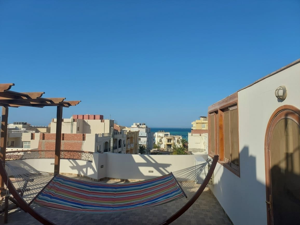 Vue sur la mer Rouge, notre appartement est équipé de tout ce dont vous avez besoin, y compris la climatisation, l'eau en bouteille, le thé et le café, et situé derrière la villa. La piscine est partagée avec les propriétaires, un couple de retraités du Royaume-Uni, leur chien sympathique Dotty et parfois leur famille, mais avec beaucoup d'espace pour se détendre et profiter de l'air marin. Au pied de la route se trouve une plage isolée pour les résidents, c'est toujours très calme, avec un lagon pour nager. Le complexe est très proche des commodités et du centre.