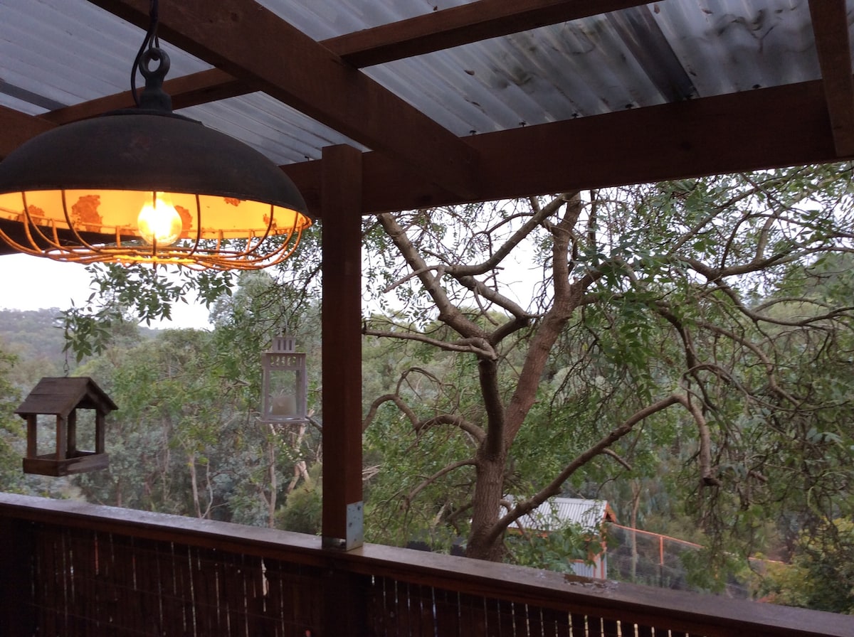 Bienvenue à Treetops ! Situé à l'entrée de la vallée de la Yarra, ce chalet indépendant rénové de 2 chambres est idéal pour une escapade pour se détendre et profiter de tout ce que la région a à offrir. Idéal pour en famille, en couple ou entre amis. À une demi-heure en voiture de nombreux lieux de mariage et vignobles. Situé sur 18 acres, parmi les chevaux dans les paddocks, vous trouverez des kangourous et une abondance d'oiseaux, notamment des perroquets royaux, des cacatoès et des kookaburras. Vue spectaculaire car situé sur une colline.