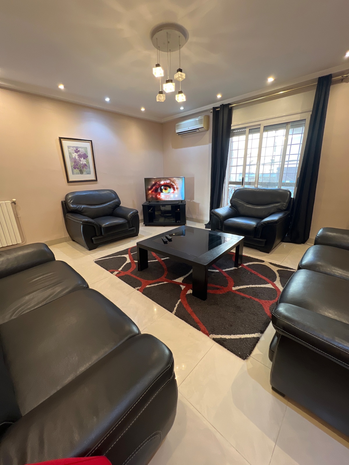 Détendez-vous dans ce logement calme et élégant, d’une superficie de 50m2 en open spaces, Rez de chaussée avec accès indépendant et sans vis à vis, ensoleillé et aéré, dans une petite résidence immobilière privée privée, place parking réservée, entièrement meublé et équipé, chauffage centrale, climatiseurs, cuisine équipée, lave linge, lave-vaisselle, micro-ondes, frigidaire, citerne, wifi, parabole, endroit calme et sécurisé, commerces à proximité, accès rapide autoroute.