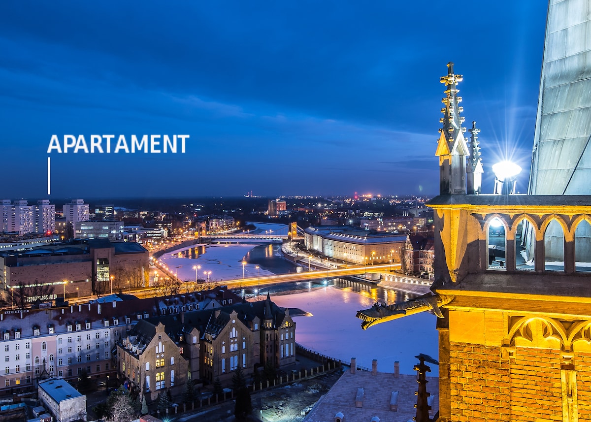 Luxury Above the City Spend a night in a unique penthouse on the top floor of Wrocław’s iconic “Manhattan”, right in the heart of Plac Grunwaldzki. This apartment is truly one of a kind – fully glass-walled, with unmatched 360° panoramic views of the entire city. Sunrises over the Oder River, city lights over the Old Town at night – everything is right at your feet.