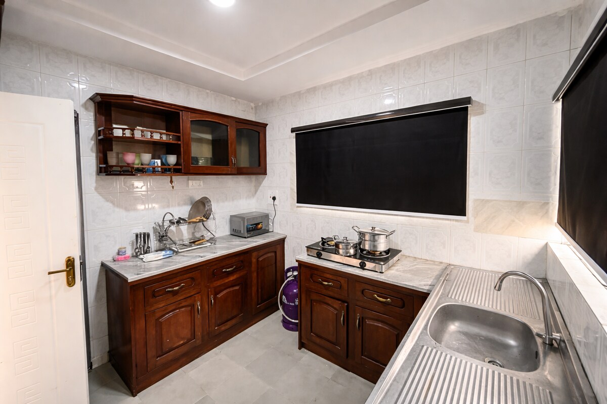 Évadez-vous dans l'oasis tranquille d'Olumide au cœur de la ville ! Notre appartement de luxe de 3 chambres avec transformateur de 33 kVA garantit une alimentation électrique ininterrompue. Détendez-vous avec style avec nos somptueuses retraites king-size et deux retraites queen, chacune avec salle de bain attenante, pour un confort ultime. Restez connecté avec le Wi-Fi rapide, soutenu par un générateur de secours ! et Netflix avec nos téléviseurs intelligents de 65 et 42 pouces, une cuisine entièrement équipée et des balcons privés. Parfait pour les séjours longue durée, les familles et les groupes. Réservez et détendez-vous