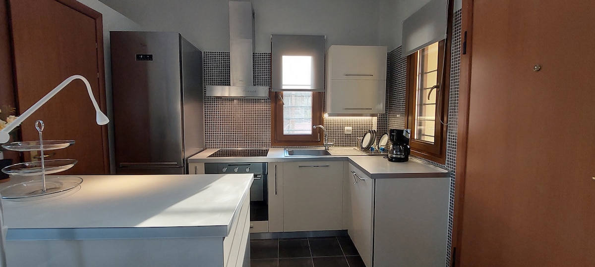 Loft tout neuf (78 m²) spacieux avec un beau jardin. Meubles et luminaires faits main de notre propre conception. Un lit double très confortable avec un matelas à mémoire de forme vous attend. Le loft est situé dans le centre-ville, à moins de 10 minutes de l'aéroport et de nombreux centres commerciaux. À 3 minutes à pied, vous êtes sur la place de la ville et à 10 minutes du barrage de Thermi. Vous pouvez rejoindre la Chalcidique en 30 minutes. Il dispose d'une connexion internet de 200 mbs.