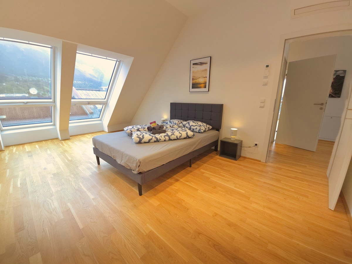 Ce logement spécial et calme est situé dans l'un des quartiers les plus anciens d'Innsbruck, à seulement 10 minutes de la vieille ville et à 5 minutes de la nature. Dans le cadre de la région touristique d'Innsbruck, nous pouvons vous fournir les Welcome Cards. Détendez-vous sur la terrasse privée, dans le salon confortable ou profitez de la vue sur le ciel depuis le lit. L'appartement dispose d'un lit double de 160 cm et d'un lit de 140 cm sur un plancher surélevé (ne convient pas aux jeunes enfants).