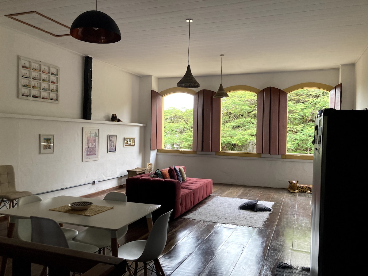 La Maison est une mezzanine avec air condition et est situé sur le célèbre front de mer, une agréable promenade de 5 minutes à pied (300m) au Centre Historiqu. Situé dans un paisible village de chalets, entre les hôtels la comtesse (Condessa) et "Pousada Provence", la rue a une piste cyclable et est à proximité des restaurants, vie nocturne, 500m de la pointe de la plage et à moins de 1km de la plage Jabaquara. Dispose d'un jardin intérieur ouvert et couvert avec vue sur le vert, hamac, duche..