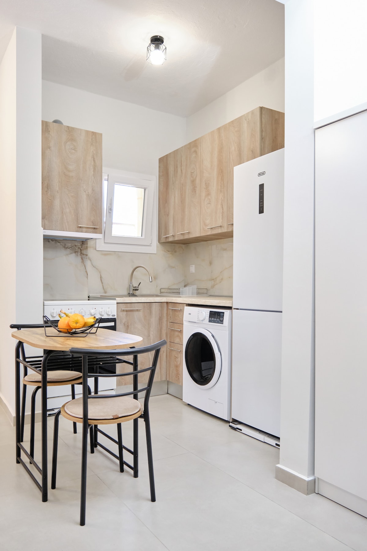 Petit appartement, avec une chambre, cuisine, salle de bain et balcon, au 4e étage d'un immeuble, dans le centre de Veria. Idéal pour couple, amis ou famille avec 1 ou 2 enfants, ainsi que pour les voyageurs d'affaires. À distance de marche, il y a des magasins de toutes sortes, ainsi que des transports urbains et interurbains. Les voyageurs peuvent visiter la ville (marché, sites touristiques, musées, cafés, restaurants, etc.) sans avoir besoin de voiture.