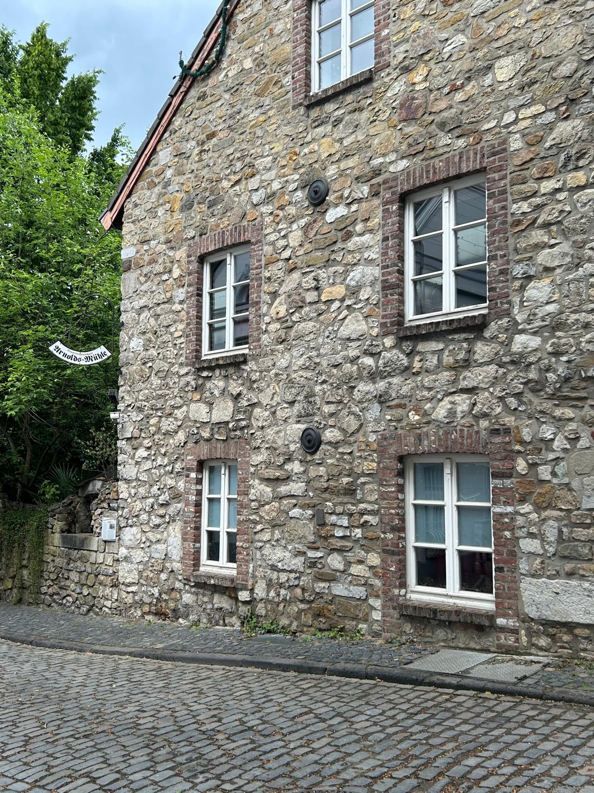 L'appartement se trouve au 1er étage et est accessible par un escalier extérieur. On y trouve également une petite terrasse qui peut être utilisée. Les murs intérieurs sont enduits d'argile, le sol est recouvert de planches. L'appartement est situé dans une rue calme. Les transports publics (bus et train) sont à proximité immédiate. Une liaison régulière vers Aix-la-Chapelle, Herzogenrath ou les Pays-Bas est à 10-15 min. à pied.