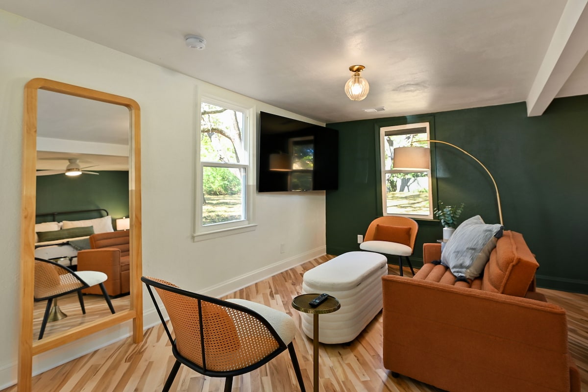 Bienvenue à The Oasis Hideaway, niché à seulement 15 minutes du quartier Power & Light du centre-ville et des emblématiques stades Kauffman et Arrowhead. Plongez dans la détente avec notre jacuzzi pittoresque avec vue sur le jardin, célèbre pour avoir été utilisé dans un film de meurtre mystère. Défiez vos amis à la table de billard et créez des souvenirs inoubliables. Célébrant plus de quatre ans d'expériences exceptionnelles, nous vous invitons à profiter d'un séjour unique dans notre escapade sereine !