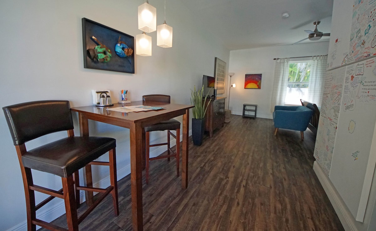 La suite West Bimini est située à 900 pieds des plages de l'océan Atlantique, à 2000 pieds de la rivière Indian et à trois pâtés de maisons des restaurants et des magasins d'Ocean Avenue. C'est une véritable vieille escapade en Floride dans l'un des quartiers les plus détendus et les plus sûrs de la côte spatiale de la Floride. Parfait pour les vacanciers adultes ou les voyageurs d'affaires (pas d'enfants).