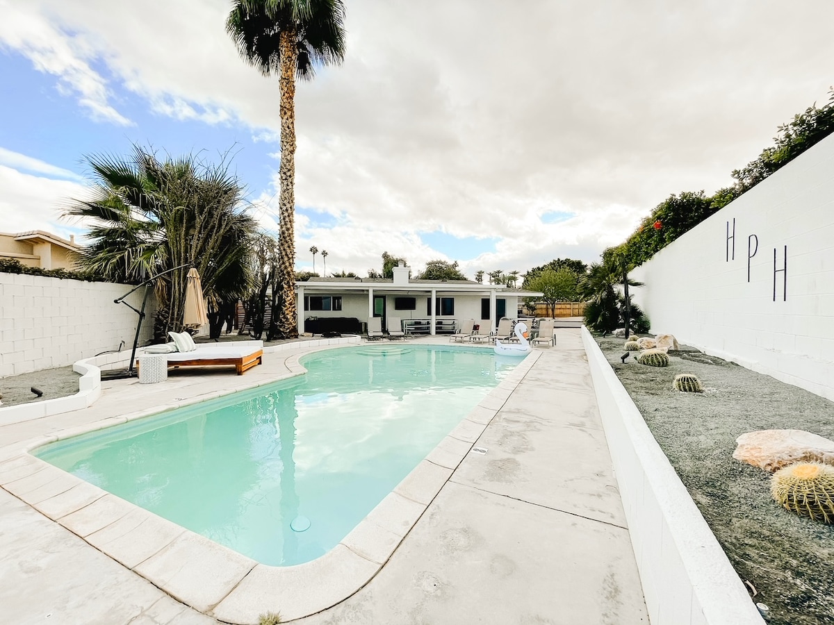 Look no further, HPH is the perfect place for your relaxing spring getaway. Get out of the snow and enjoy the warm desert weather. 🎾This home is a short drive or walk to the tennis tournament🏟️ ⚡️EV charger installed and free for guest use ⚡️ Pool heating available upon request. At the base of the Santa Rosa mountains HPH provides a relaxing space the entire family can enjoy. The expansive backyard features a large pool, fire pit, bocce court, putting green, TV and multiple lounging areas.