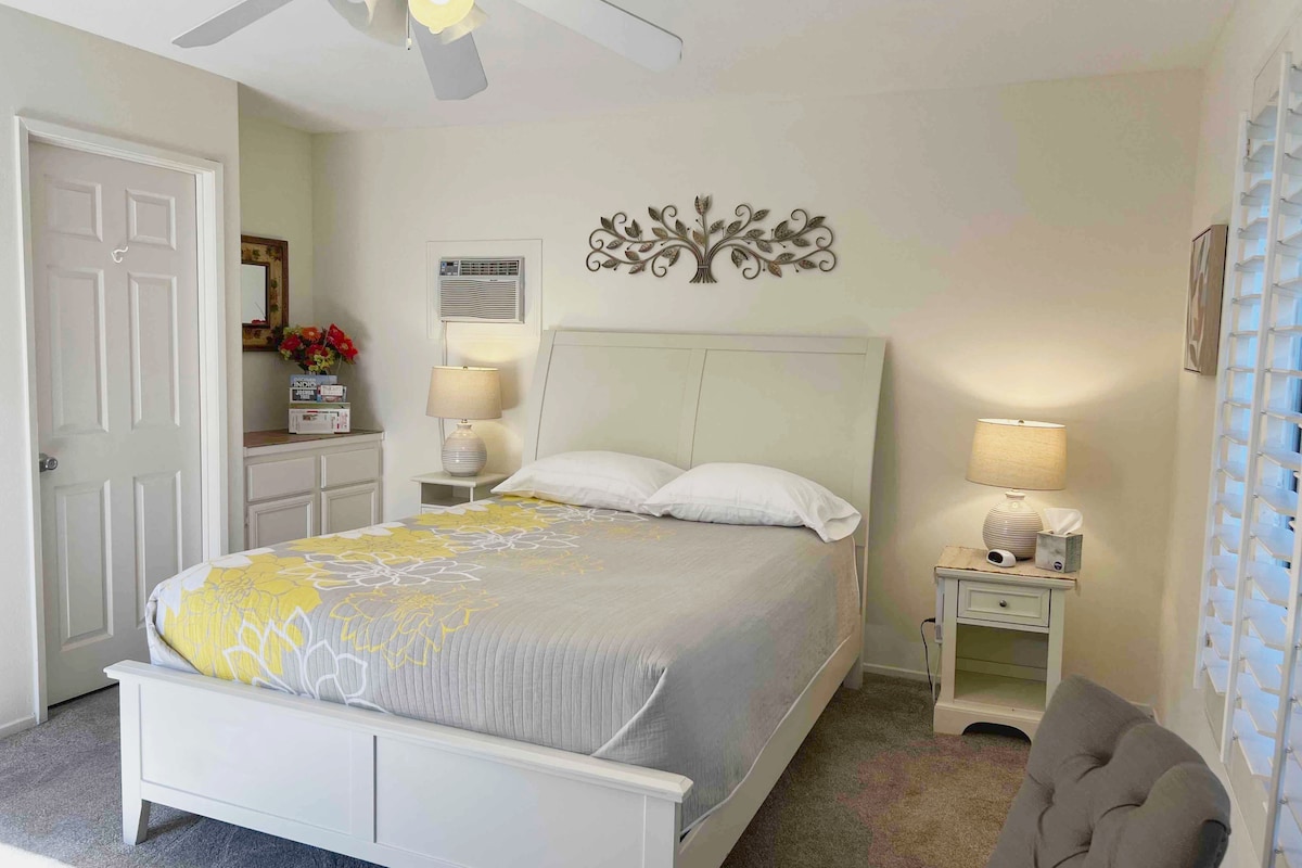 Self Check-in Private Entrance Casita with No Added / Hidden cleaning fee. Including a bedroom with Queen size "Serta Perfect Sleeper" bed, 43” TV, mini fridge, microwave and Kuerig coffee maker. Wall AC unit and ceiling fan for guest comfort. Private en-suite bathroom with shower. A closet & dresser. No Pets Allowed. I've been an Airbnb super host for 11+ years and try my very best to make sure the casita is clean and comfortable for all my guests. Welcome to my home & your own private casita!