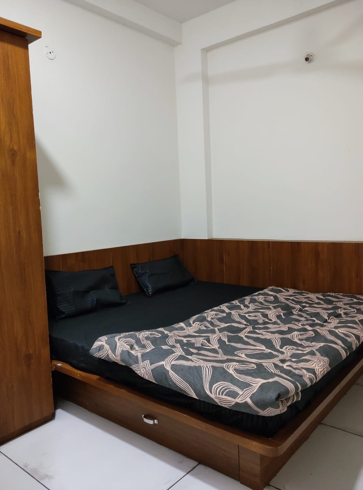Forget your worries in this spacious and serene space. Relax in this luxurious 375 sq.ft. 1RK designed for premium comfort. Enjoy a private front balcony, fully equipped kitchen with personal RO, and a plush 7’x7’ bed with 8” memory foam mattress. Unwind on the 4-seater recliner sofa, stream on Android TV, and stay connected with free high-speed WiFi. Spacious wardrobe, big dresser, cloth hanger. Perfect for short and also long stays.