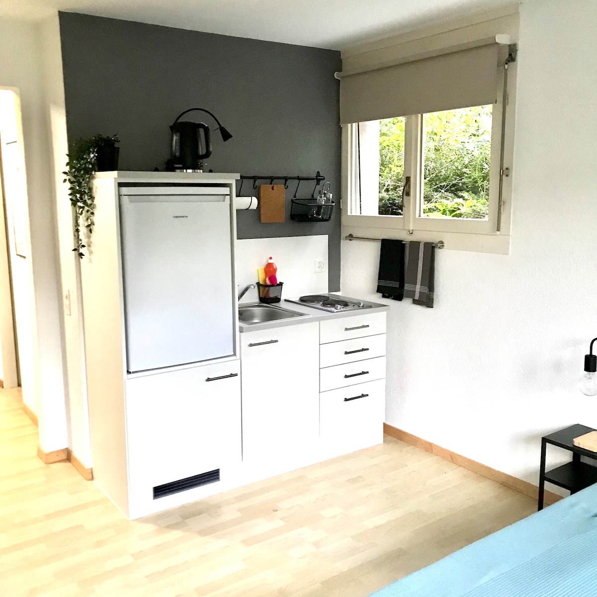 Un appartement fonctionnel de 3 pièces vous attend avec une salle de bain et une petite cuisine. Utilisation commune du jardin, arrêt de bus devant la maison (7 min. de la gare/centre-ville). Seul, en couple, entre amis ou en famille, profitez de la vue magnifique dans le jardin confortable, faites de la randonnée le long du chemin de la vigne, vous baignez dans le lac et explorez la vieille ville de Bienne... et laissez le charme de la vieille maison agir sur vous. L'appartement principal est habité par l'une des hôtesses.