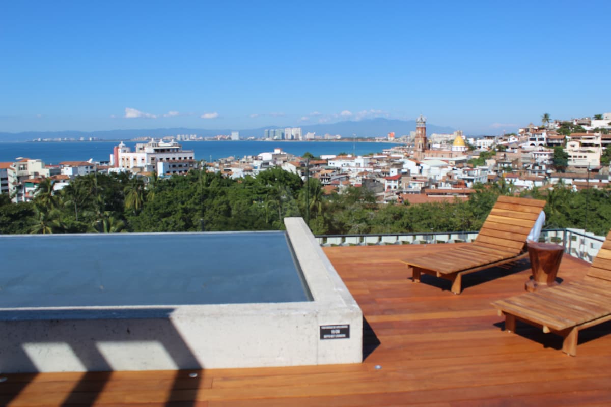 Updated Pool Area! Spacious & modern 1240 sq. foot, 2 BR, 2 BA unit, with a sofabed, that allows for up to 4 guests to comfortably stay in this centrally-located oasis. (Nov4-7 roof closed) Enjoy a posh, luxury condo development in the Romantic Zone of Old Town, PV, with a rooftop you don't want to leave! Tastefully designed with the support of a local interior designer. Comfort, warmth, relaxation, & luxury are all key elements in the careful selection of furnishings.
