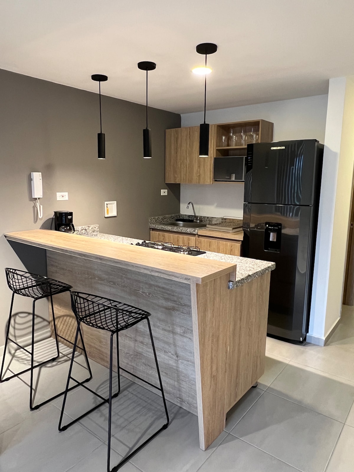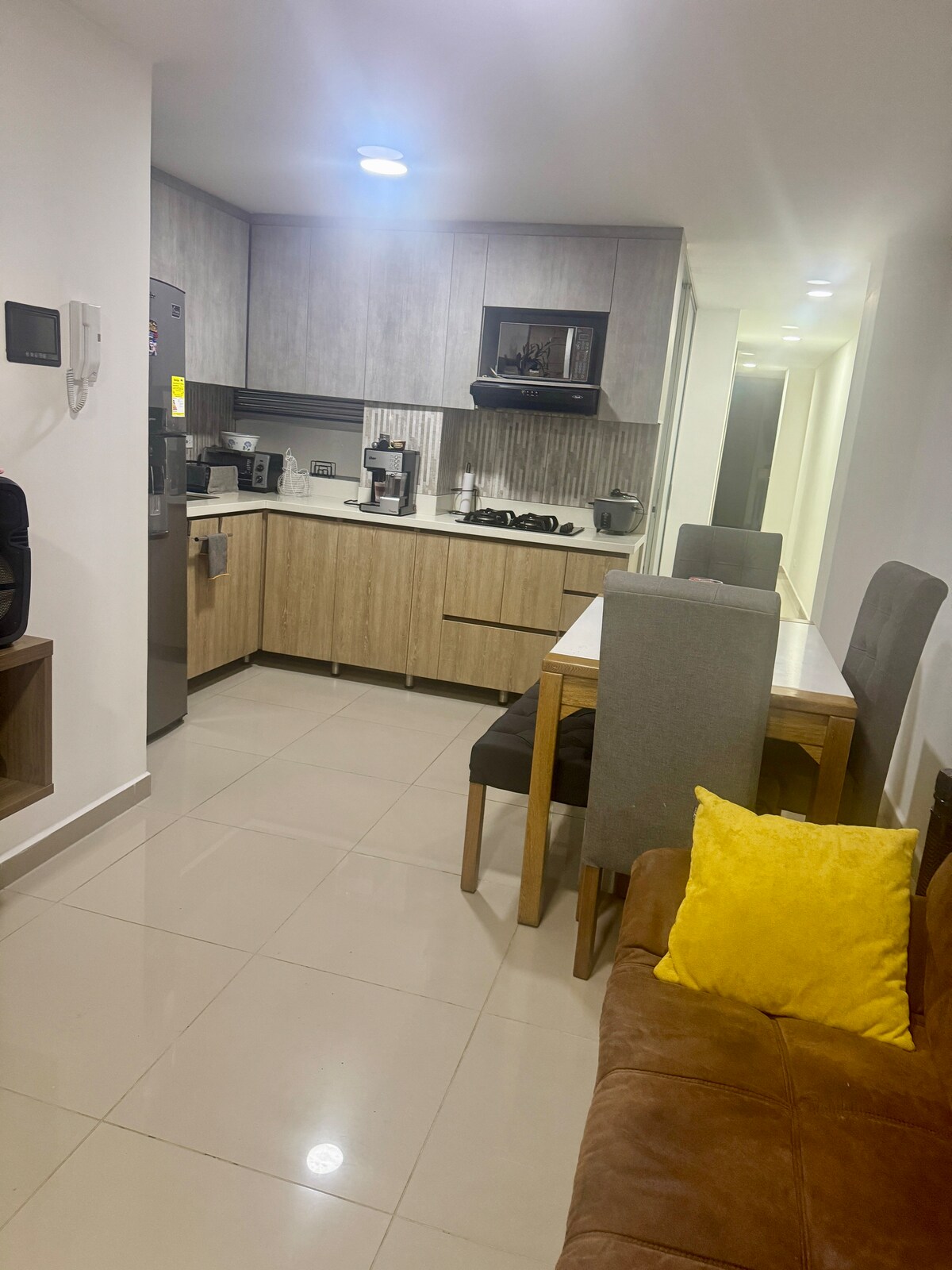 Profitez de la simplicité de cet hébergement calme et central, à un pâté de maisons du parc principal d'Itagüí. L'appartement est entièrement équipé, avec réfrigérateur, cafetière, ustensiles de cuisine, un lit double et un canapé-lit, il dispose d'une télévision, Roku et Wifi haut débit. Le studio est situé dans le centre commercial Gran Manzana au cœur d'Itagüí, un centre commercial qui dispose d'un supermarché, d'une salle de sport, de parkings Nous disposons d'un parking gratuit pour les 3 premières nuits