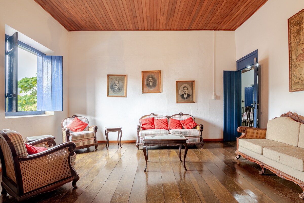 Casarão de Fazenda de 1881, avec un hébergement rustique dans les chambres, une cuisine complète avec poêle à bois, un espace de loisirs avec barbecue et une piscine d'eau naturelle. Il dispose de 2 salles de bains intérieures et 1 extérieure. Près des rivières et avec une zone propice aux promenades écologiques et au tourisme rural, en plus d'une piscine naturelle. Près de l'entrée de la partie supérieure du parc national d'Itatiaia (environ 25 km). Nous avons une connexion internet.