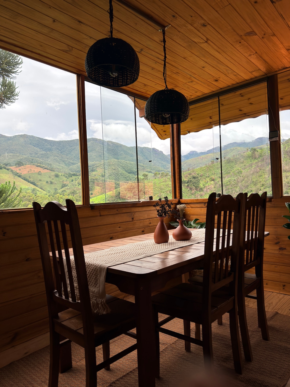 Mon logement est un tout nouveau chalet confortable, avec une cuisine équipée, une salle de bain et un balcon au premier étage, et au deuxième étage, une chambre avec un lit double et un lit simple et une terrasse avec une vue incroyable... Nous sommes à 36 km de la ville d'Itamonte. Venez vous reposer et vous détendre au milieu de la nature et des montagnes de Mantiqueira. Et nous sommes à 17 km du parc national d'Itatiaia, en haut des Agulhas Negras. Et à proximité de plusieurs belles cascades de la rivière Aiuruoca.