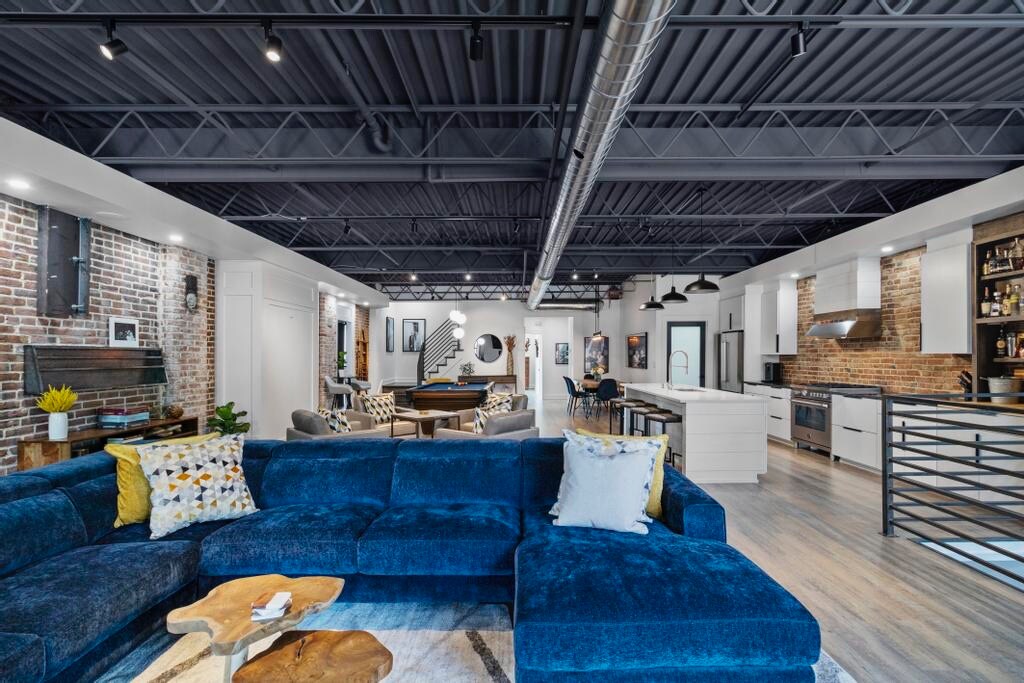 Discover a stunning historic loft in vibrant Independence Square, perfect for 5 guests. This modern, Scandinavian-inspired space features an open floor plan, high ceilings, a dedicated workspace with fast Wi-Fi, and a fully equipped kitchen. Walk to unique boutiques, local dining, and historic Truman sites, Chiefs, Royals and World Cup Games. Ideal for families, remote workers, or a stylish city getaway. Enjoy the blend of 1800s charm and modern comfort in this unique urban retreat.