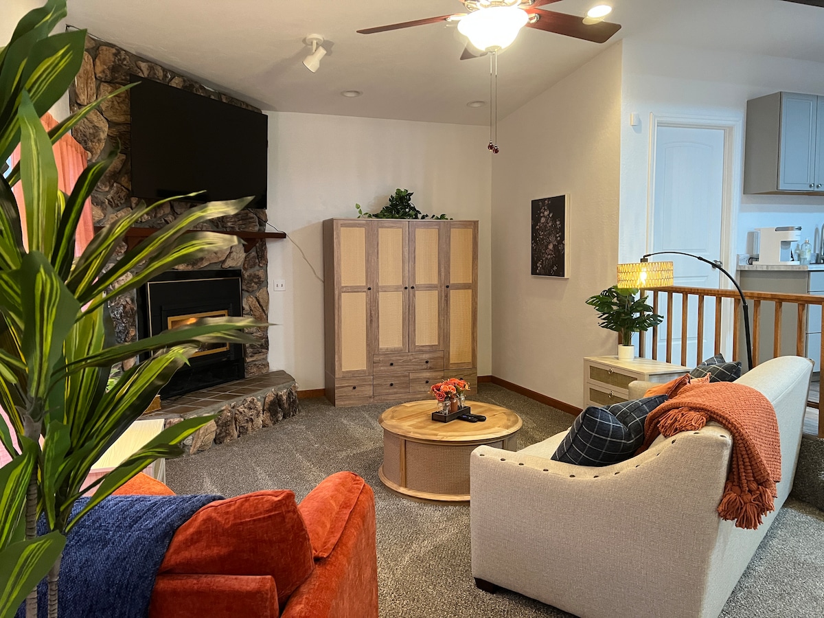 Détendez-vous dans ce logement unique et tranquille. Immergez-vous dans le son de la forêt en contemplant la vallée d'Applegate et les fermes de lavande en contrebas. Promenez-vous dans plus de 10 acres de forêt et profitez d'un bain de forêt et des sons de la rivière en contrebas. À quelques minutes des célèbres vignobles de la vallée d'Applegate et du lac Applegate. Montagnes enneigées en vue la majeure partie de l'année. Cet espace dispose d'une chambre privée et d'une salle de bain avec une entrée indépendante. Pour les nuits froides, profitez d'une cheminée confortable et d'un film.