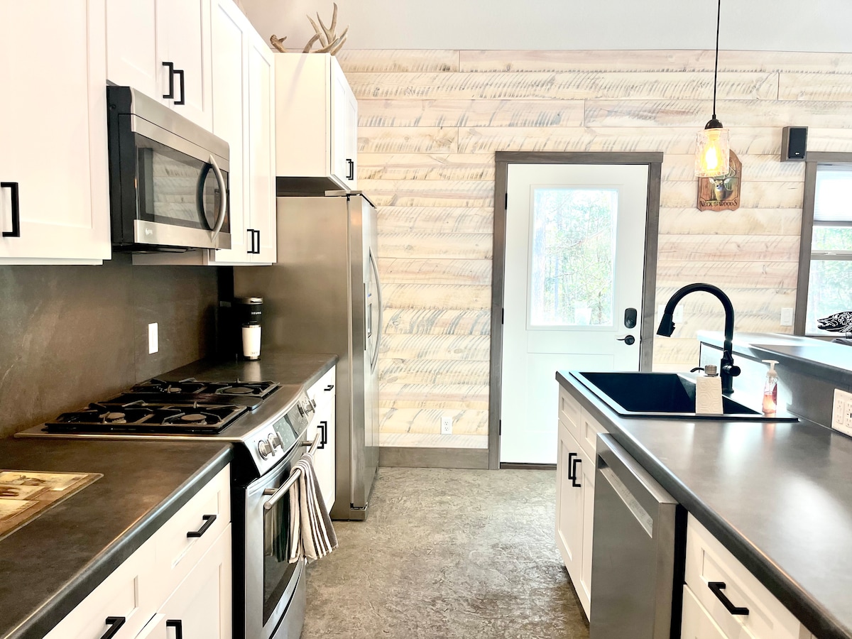Selon Forbes, Escape fabrique « les plus belles micro-maisons du monde ». La nôtre est perchée près de notre maison au-dessus de la rivière Black. C'est un quartier calme à quelques minutes de l'autoroute, des parcs, des sentiers et de notre centre-ville animé avec des cafés, des boutiques et d'excellents restaurants. Profitez de l'intimité et de la vue à couper le souffle depuis les énormes fenêtres ou le lit de jour confortable sur le porche ! Les cerfs, les castors, les aigles et bien d'autres font de fréquents camées alors que les saisons peignent des paysages fluviaux changeants et des couchers de soleil étonnants. *Pas d'animaux de compagnie.