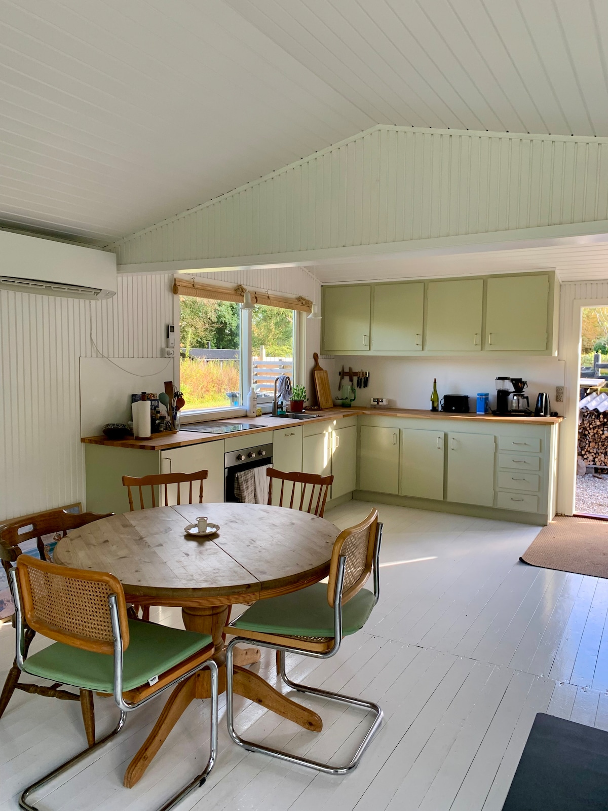 Bienvenue dans notre charmante petite oasis. Notre chalet en bois de 48 km2 contient une chambre, une cuisine, une cuisine, un salon et une salle de bain. À côté de la maison principale, nous avons construit une annexe de 19 km2, ce dont nous sommes très heureux. Vous aurez accès à l'annexe si vous réservez pour plus de 2 personnes. La maison est le sanctuaire de notre petite famille, se sentir comme chez nous et en prendre soin. Beaucoup de salutations de Christopher et Trine
