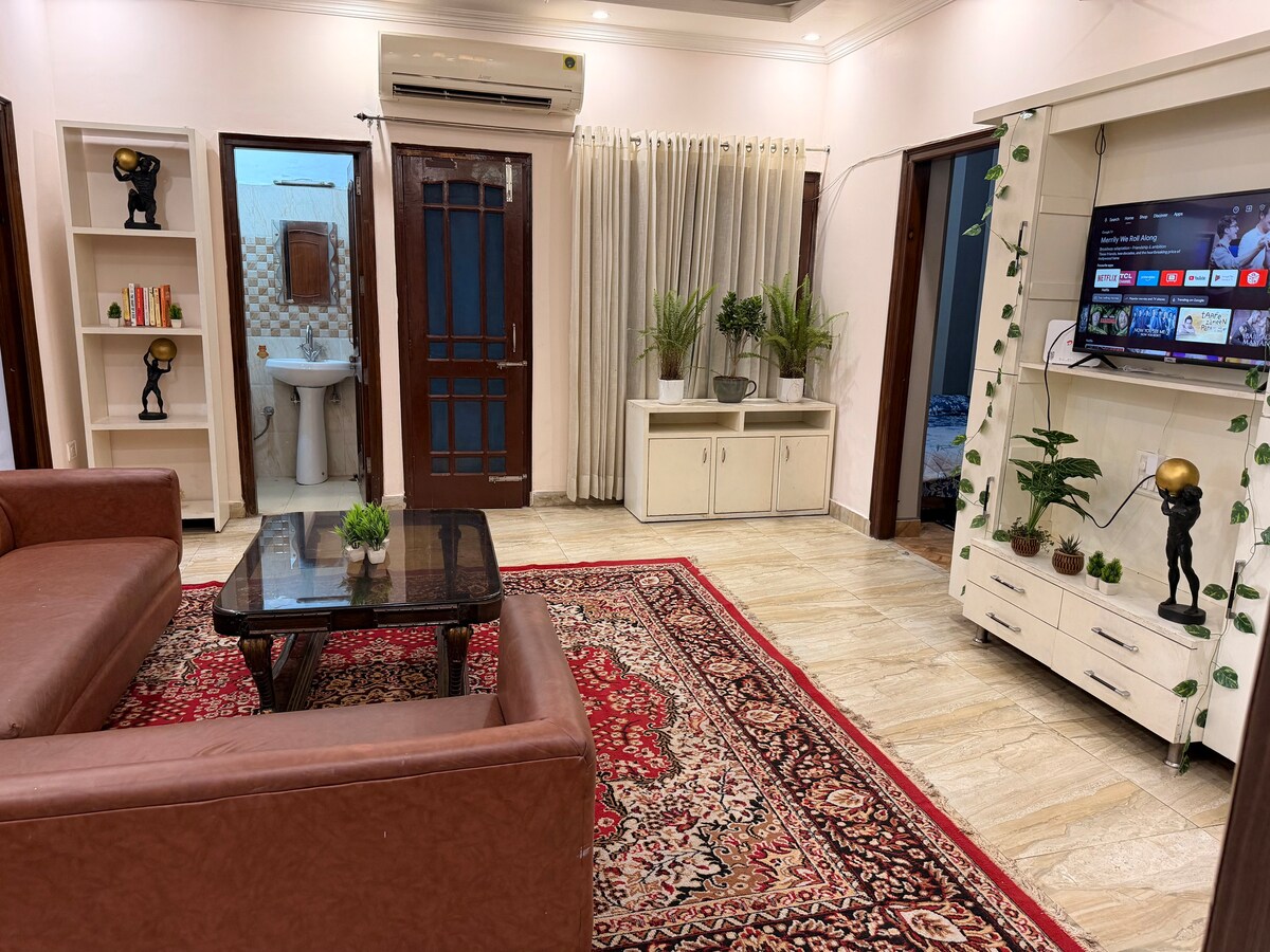 Welcome to Aura Stay, a cozy and peaceful home perfect for a relaxing getaway. 5 minutes away from Railway station (1.5km) & 20 minutes away from the airport .The space features two comfortable, one full washroom and one half washroom, a fully equipped kitchen, a warm living area, and a quiet study/workspace. Guests can also enjoy a cozy private garden, perfect for morning coffee or a peaceful evening. Aura Stay is designed to offer comfort, convenience, and a welcoming home-like experience.