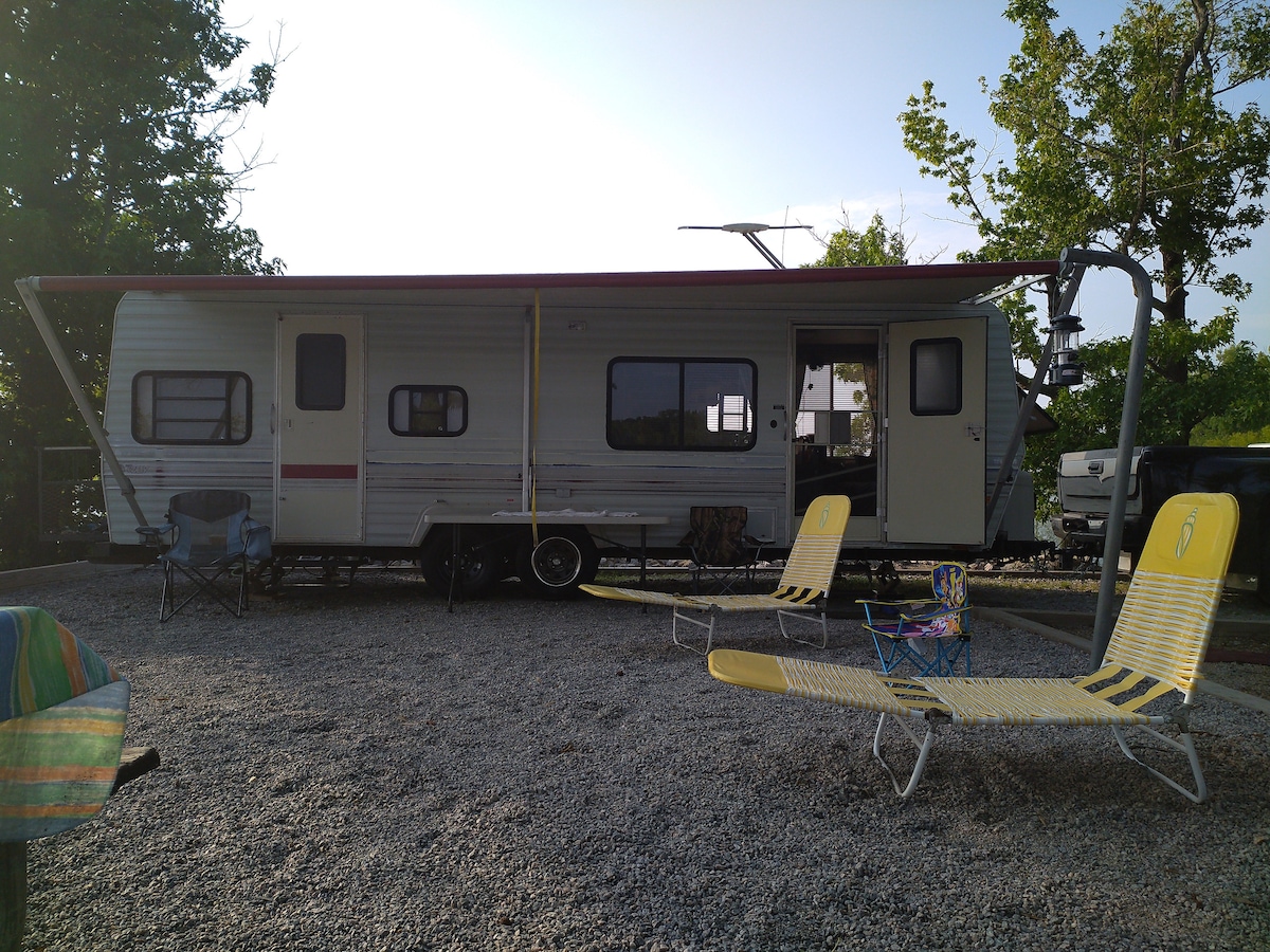 Bienvenue dans notre confortable caravane ! Vous camperez avec tout le confort d'un chez-soi dans notre caravane fixe de 35 pieds nichée dans les arbres, sur notre propriété de 20 acres à la campagne. (Elle est près de la route, mais si vous pouvez supporter un peu de circulation routière occasionnelle, vous allez adorer notre logement !) Profitez des oiseaux qui chantent, regardez les écureuils jouer dans les arbres, buvez votre café à l'extérieur pendant que le soleil du matin brille. Profitez d'un pique-nique ou regardez les étoiles tout en étant assis autour du foyer à gaz. Venez séjourner !