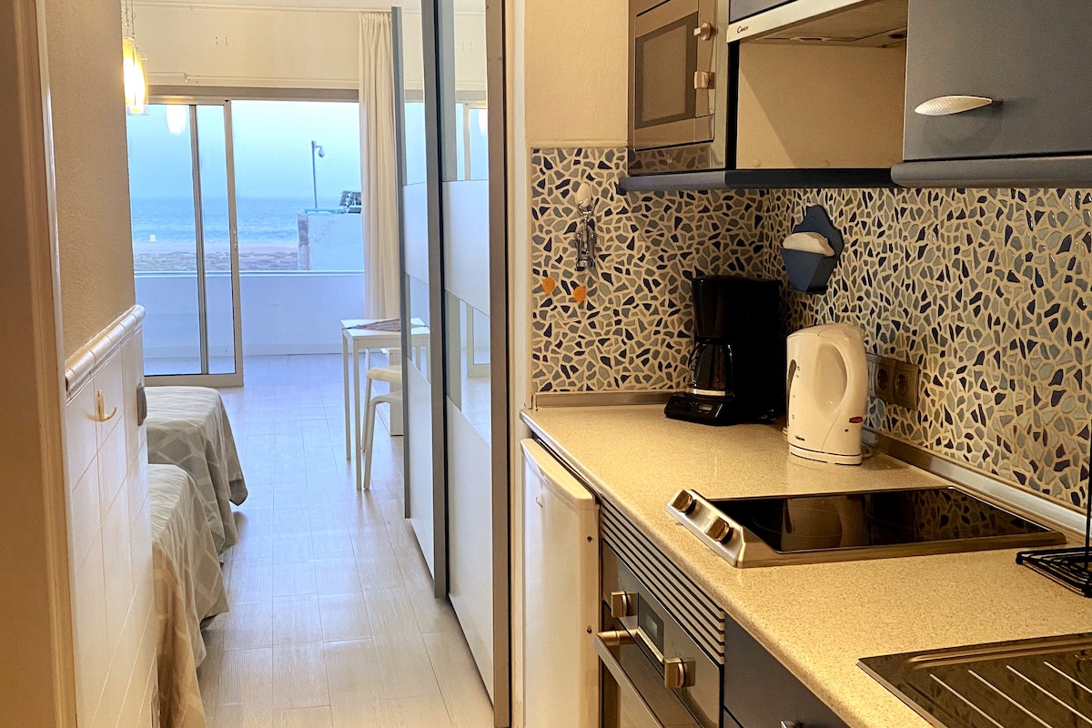 Appartement moderne avec balcon et vue extraordinaire sur la mer, très bien situé, à moins de 3 minutes à pied de la plage. Rénové, avec Internet gratuit, climatisation, TV avec chaînes internationales, calme, confortable et lumineux, avec une double hauteur et une mansarde idyllique.