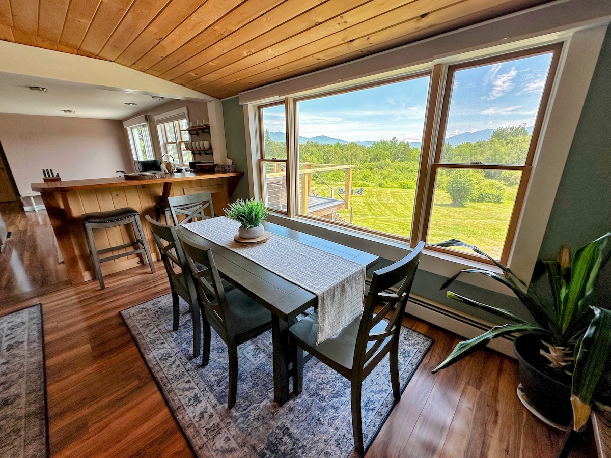 Bienvenue dans notre chalet avec vue sur la montagne ! Avec une vue magnifique sur la montagne, cette maison est située au centre des attractions de la région ! Le Mountain View Grand Resort se trouve juste en bas de la route. Bretton Woods et Cannon sont à quelques minutes en voiture. Sentiers de randonnée, lacs, pistes de ski et de motoneige à proximité ! Proche de Littleton, Bethlehem et Lancaster ! Profitez de la cour arrière paysagée avec foyer et patio abrité. Restez à l'intérieur et profitez de la vue depuis le solarium, ou blottissez-vous sur le canapé dans le salon confortable avec poêle à bois.