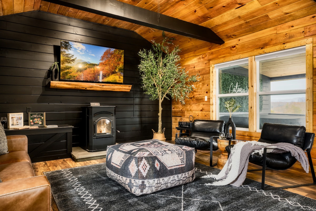 Détendez-vous dans ce logement unique et tranquille. Nichée le long de la pittoresque réserve faunique de Catoosa, cette cabane isolée se trouve au milieu de 12 acres privés, offrant une paix inégalée et des vues spectaculaires sur les montagnes ! Doté d'une tour d'observation privée, d'un jacuzzi luxueux, d'une cheminée intérieure confortable, d'un foyer à couper le souffle et bien plus encore...