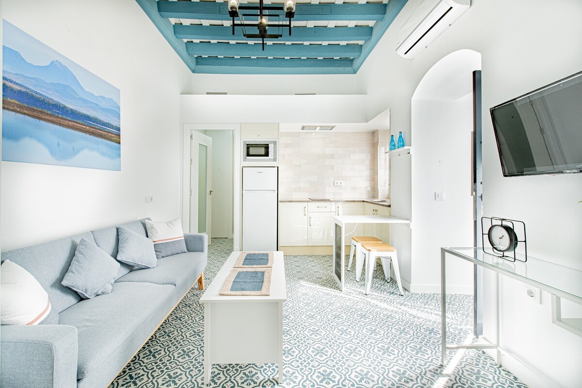 Appartement rénové dans une maison typique de Cadix avec façade en pierre d'huîtres, très calme dans le centre historique de Cadix, dans le quartier de Santa María, à quelques mètres de la mairie, de la gare, de la cathédrale et du port maritime. Près de la plage, 8 minutes à pied. Zone pleine de terrasses, la maison est dans un endroit stratégique pour ne pas avoir à prendre la voiture. Il dispose d'un grand salon avec kitchenette et de deux chambres.