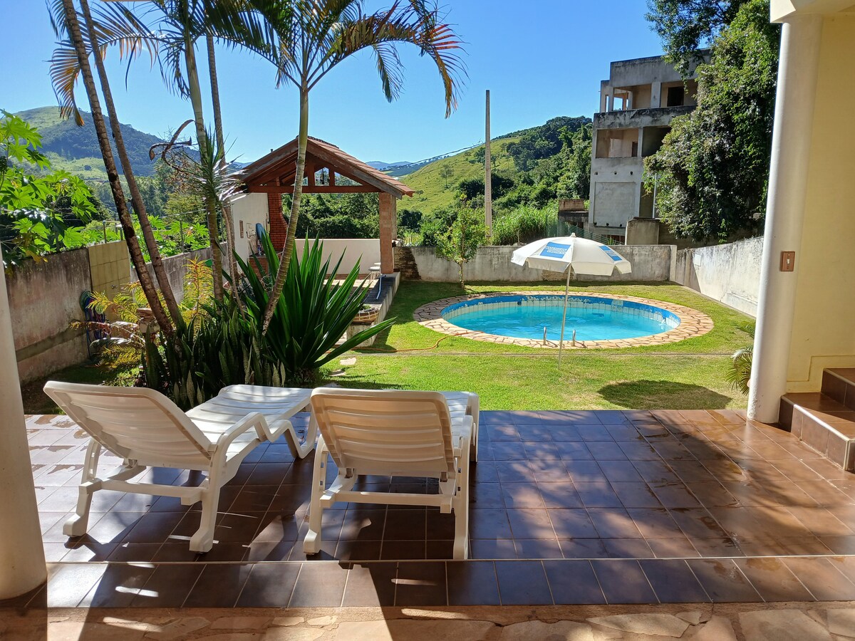 Maison de verre face à la montagne. Magnifique espace entièrement équipé pour accueillir les familles et les couples qui veulent la tranquillité et le contact avec la nature. Face au sommet du piripau à Cambuquira, à proximité de toutes les installations telles que les supermarchés et les pharmacies. La maison dispose de deux chambres, d'une suite avec une baignoire, d'un grand salon, d'une salle de bain et d'un WC social, d'une cuisine. Espace extérieur avec grande pelouse