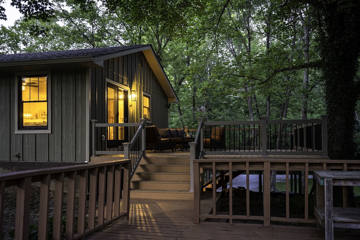 Évadez-vous au Sugar Creek Lodge, une retraite privée au bord du lac nichée dans la forêt sans voisins de part et d'autre. Profitez de vues paisibles, de deux terrasses, d'un grand quai privé avec bateau et jet ski, de kayaks, d'un foyer et de nouveaux meubles. L'Internet à fibre rapide est idéal pour le travail à distance. Les trois niveaux disposent chacun d'une chambre et d'une salle de bain complète. Cuisine entièrement équipée, 2 réfrigérateurs, nouveaux appareils électroménagers et lave-linge/sèche-linge. À seulement 5 minutes de l'autoroute I-24 et à 10 minutes des épiceries — isolement total, mais proche de tout