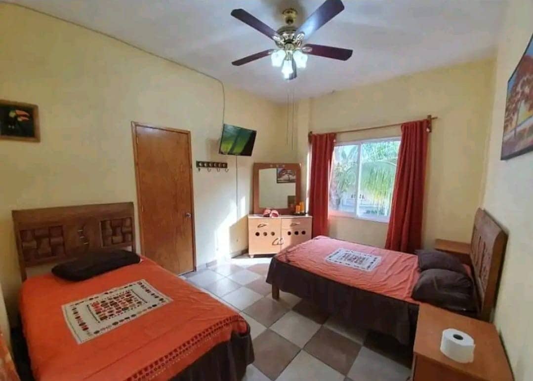 Belle et propre chambre pour deux personnes, entourée de jardins dans un environnement totalement paisible, mais en même temps proche de l'excitation du rouleau. car la maison est à environ 50 mètres du parc. La chambre dispose d'un lit double 1, un canapé-lit,salle de bains privative, TV Cable, A/A Minisplit, wifi. Il a une entrée indépendante.