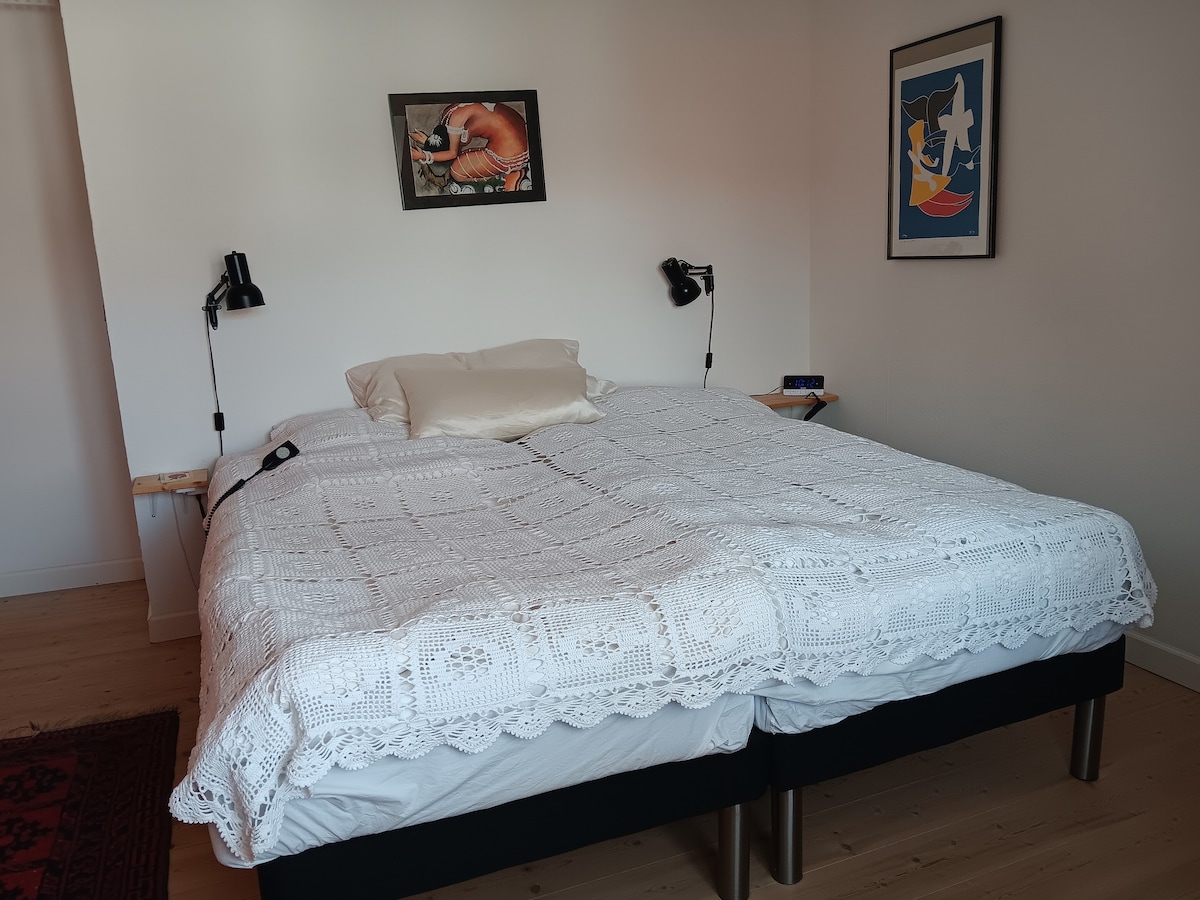 Lys og hyggelig lejlighed midt i hjertet af Aalborg. 3 min. gang fra Vesterbro m. offentlig transport, butikker og Jomfru Ane Gade. 5 min. gang fra togstation, sygehus og havnepromenaden. Wifi, kontorplads og vaskefaciliteter i lejligheden. Køkken med mikroovn, opvaskemaskine og airfryer, samt køkkenredskaber og porcelæn til 6 personer. Plads til 4 mennesker i dobbeltseng og 2 enkeltsenge, 3 af disse er elevationssenge med kvalitetsmadrasser, så du garanteres en god søvn.