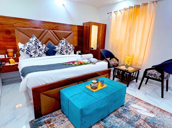 Welcome to Sundowner Stay, a peaceful wabi-sabi themed Ganga view retreat in Rishikesh. Enjoy a private jacuzzi with river views and watch Janki Setu light up in the evening for a magical experience. The room offers a private balcony, instant hot water with heat pump, strong rain shower, and a live hygienic jacuzzi. Perfect for couples or solo travelers or group of friends seeking luxury, calm, and unforgettable memories by the Ganga.