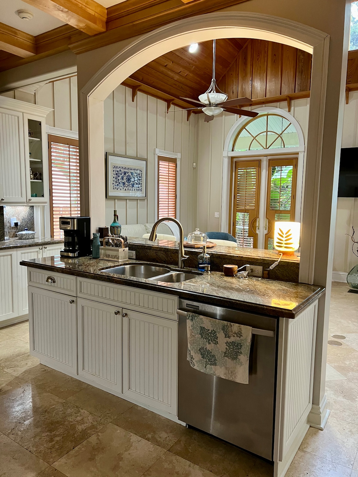 Cette escapade unique et tranquille est parfaite pour une retraite ou une réunion de famille. Tous les éléments de la nature sont présents ici. Émerveillez-vous devant les plafonds en bois de cèdre, marchez sur les sols en pierre de Travertino, plongez dans les eaux de la piscine scintillante de forme libre et baignez-vous au soleil ou asseyez-vous à l'ombre du jardin en inhalant l'air salé apporté par les brises murmurantes de l'océan Atlantique voisin. Sentiers de randonnée dans les parcs d'État à proximité. Explorez la région en louant un vélo, une voiturette de golf ou un kayak. Par Rapids Waterpark