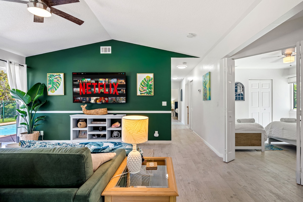 Bienvenue à Surf Shack Jupiter, hébergé par Moremoments rentals ! Ce SurfShack tropical et confortable est situé dans la belle ville de Tequesta. Cette propriété a tout ce dont vous avez besoin au paradis : SALLE DE JEUX, foyer, salle à manger extérieure et barbecue ! Animaux acceptés ! À 5 minutes de la plage, des restaurants au bord de l'eau, des parcs et plus encore ! Cette maison offre aux familles, aux amateurs de golf, aux travailleurs à distance, aux joueurs de MLB et aux amateurs de plage une retraite somptueuse avec d'incroyables espaces intérieurs/extérieurs ! À 25 minutes de l'aéroport PBI. Parking (plus de 6 voitures)