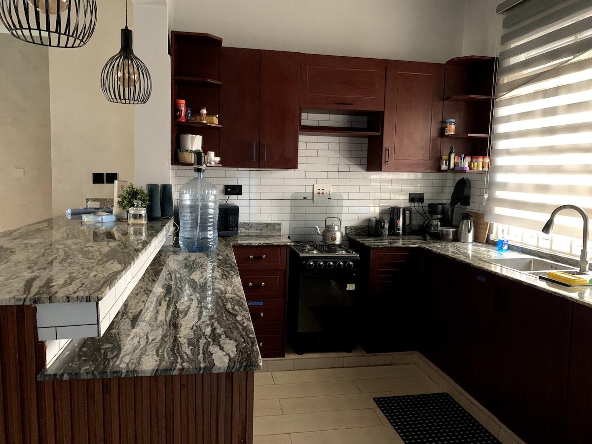 Une maison idyllique offrant un design ouvert imprégné d'un intérieur confortable. Oustide, vous pouvez vous immerger dans une vue imprenable sur les collines de Kabale tout en dînant sur la vaste pelouse. Les chambres sont spacieuses et confortables. La cuisine est entièrement équipée pour préparer et manger tout plat. Les chauffe-eau dans toutes les salles de bains vous permettent de prendre de beaux bains chauds au milieu de l'atmosphère glaciale de kabale . La nuit, la maison est éclairée par certaines des plus belles lumières. Et toute la journée, vous pouvez vous émerveiller devant un décor ultramoderne.