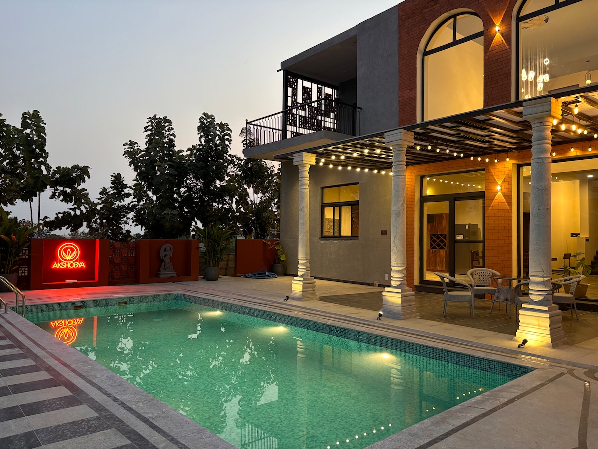 Vrindavan 6 chambres avec piscine et douche à effet de pluie par Homeyhuts