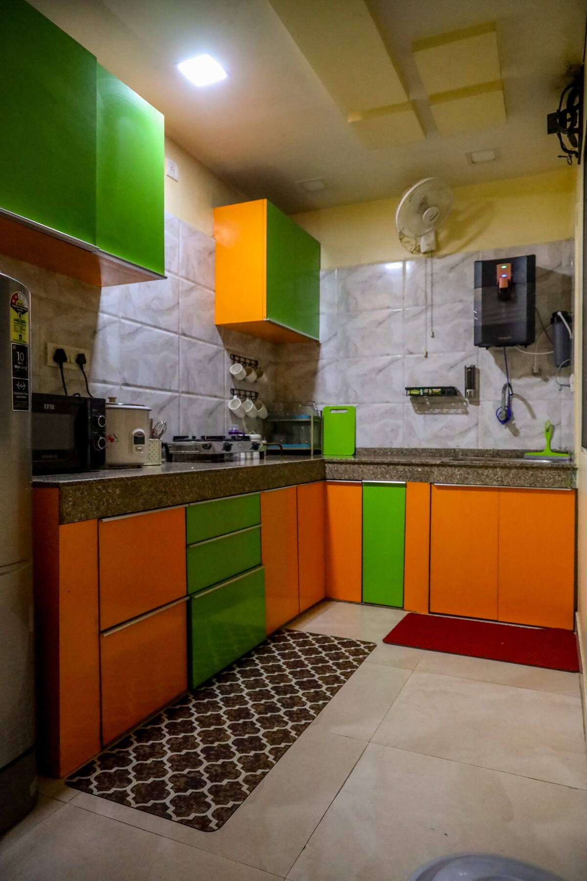 Welcome to our cozy and thoughtfully designed 3-room apartment, perfect for families, groups, or remote workers! Each bedroom features a comfortable queen bed, ceiling fan, wardrobe with locker, and its own unique vibe Room 1: Entertainment room with TV Room 2: The only room with AC workspace & story books Room 3: Recreational space to relax or stretch Enjoy a functional kitchen, high-speed WiFi, a common area with both Indian & western toilets, separate bathroom with geyser, and free parking!