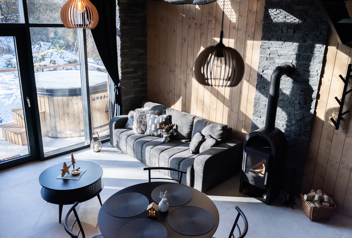 Évadez-vous en famille ou en amoureux au Chalet Wolf, une cabane magique hors réseau dans la forêt des Tatras. Entièrement hors réseau et alimenté à l'énergie solaire (en hiver, une consommation d'électricité consciente est nécessaire, un générateur sera peut-être nécessaire). Attendez-vous à une vue imprenable sur les montagnes des Tatras, les couchers de soleil, le silence de la forêt, les soirées confortables près de la cheminée et les sentiers de la cabane. Détendez-vous dans le jacuzzi sous les étoiles. Centres de ski à moins de 25 min en voiture. Voiture 4x4 recommandée. Jacuzzi + 80 € / séjour.