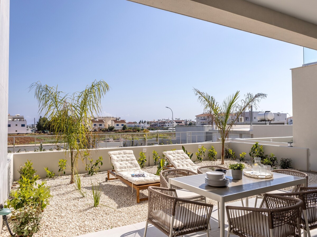 Bienvenue dans notre appartement chic et moderne d'une chambre ! Cet appartement flambant neuf, conçu avec goût, offre une maison confortable et élégante loin de chez vous dans un quartier calme, à quelques minutes en voiture du centre-ville de Larnaca et à distance de marche de la plage. Profitez du confort d'un salon élégant et détendez-vous sur le balcon privé avec de belles vues latérales sur la mer - parfait pour un café du matin ou une soirée de détente. Idéal pour les courtes escapades et les séjours prolongés.