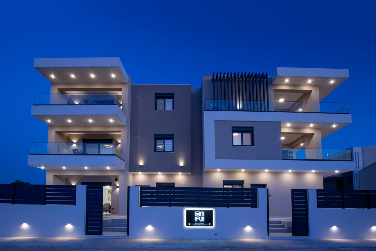 Pomaria boutique résidences a ouvert ses portes en mai 2025 et propose six suites de luxe dans la ville de Lefkada. Cette suite unique de 86 m ² offre à ses invités deux chambres avec lit King Size et matelas Coco à trois niveaux. Une grande cuisine entièrement équipée ,une grande salle de bain moderne avec des produits de soins corporels gratuits pour le séjour, un coin repas et un grand balcon donnant sur la ville. Le logement est à 10 minutes à pied de la Vieille Ville.